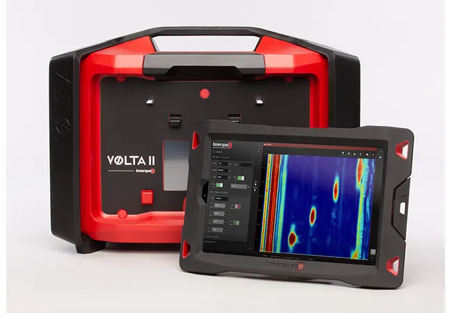 Capaz de trabalhar com sensores EMAT e piezoelétricos usando a tecnologia de pulsador patenteada da Innerspec.